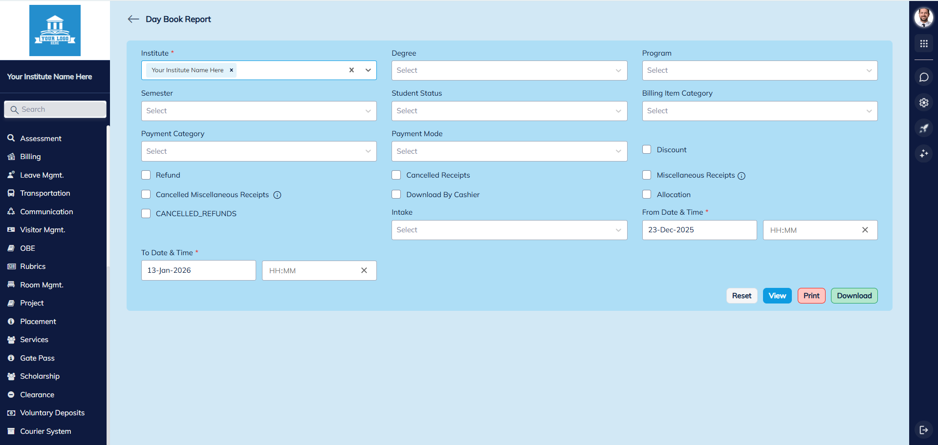 These reports enable administrators to evaluate the financial health of the institution, analyse fee collection patterns, and identify areas for improvement or optimisation.