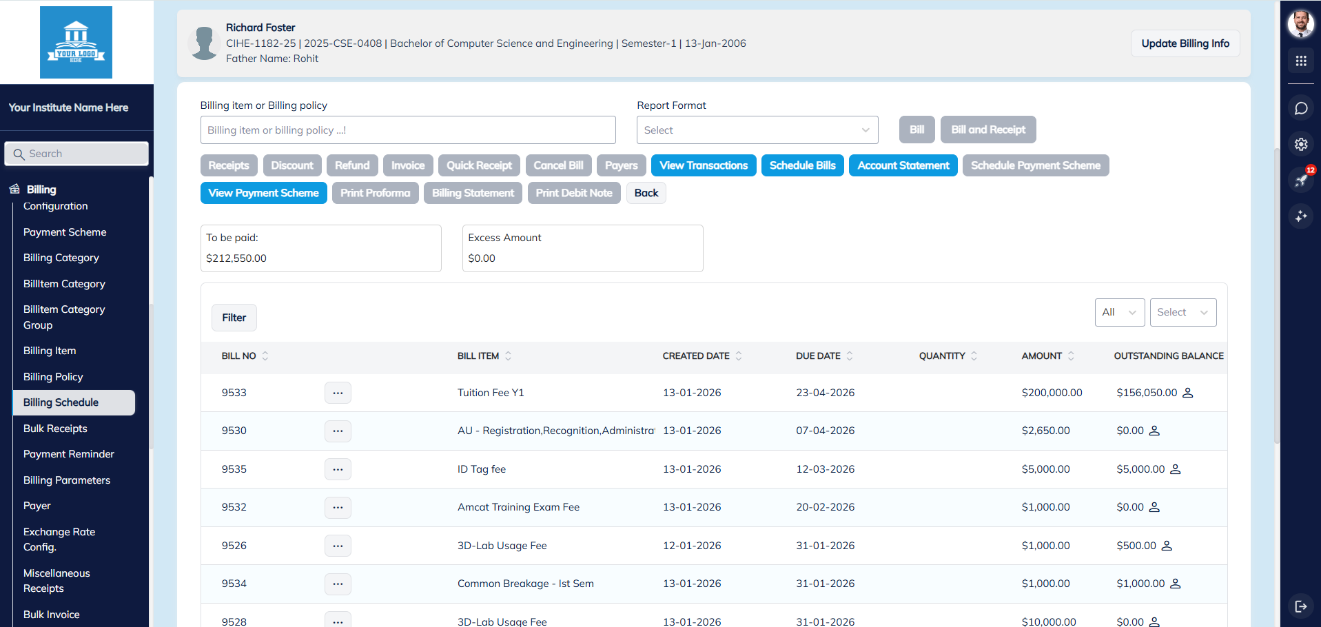 With customizable fee setups, institutions can define various fee categories and payment plans to accommodate diverse requirements.