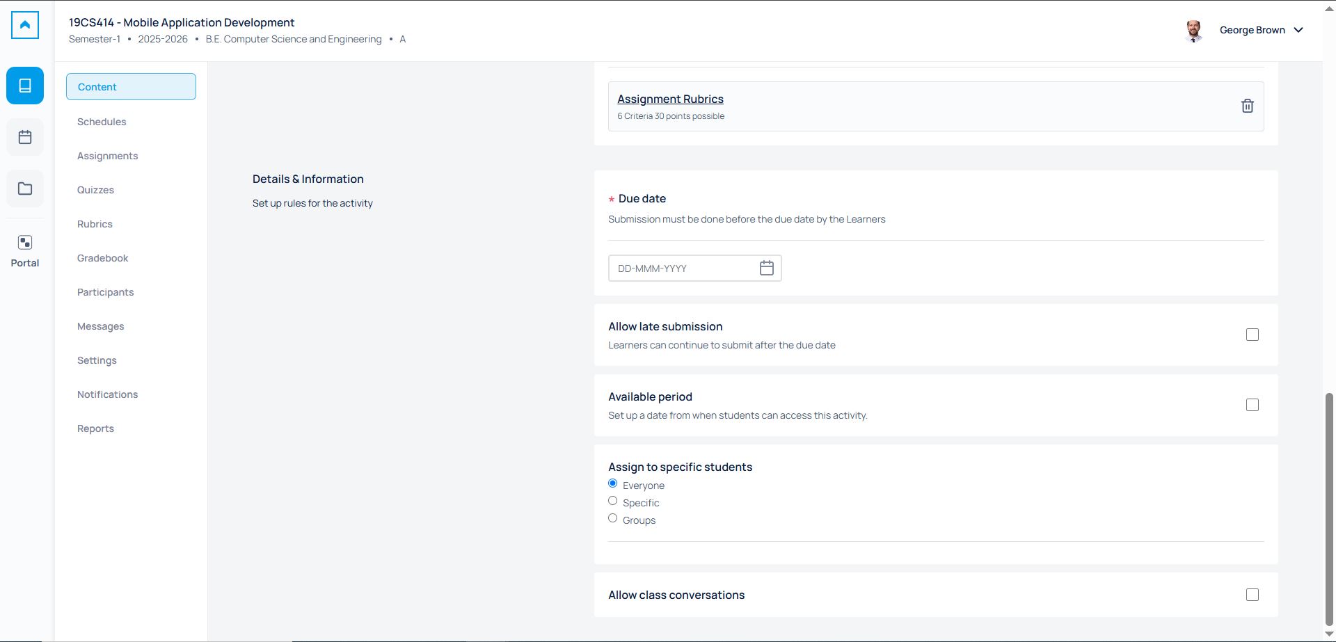 - Content Management: Enables faculty to organize lectures, documents, SCORM packages, and multimedia into clean, structured modules.